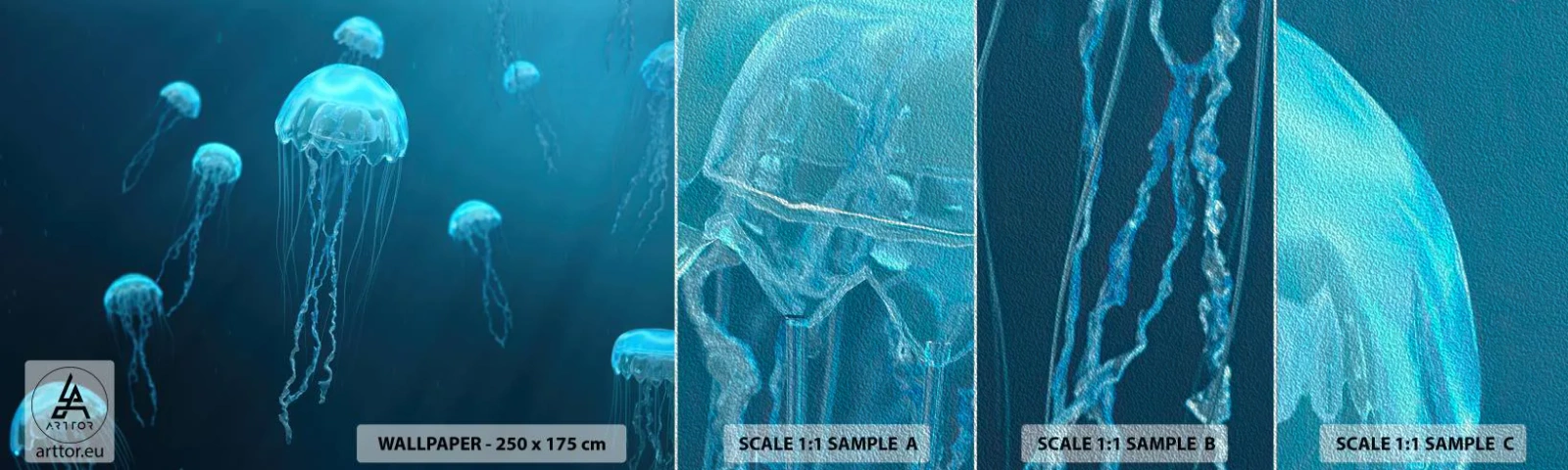 Fototapeten Muster Premium Sand - Ozeantanz - Qualle, Ozean, Wasser - 100x30 cm