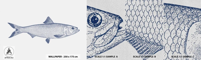 Fototapeten Muster Premium Sand - Grüße aus den nördlichen Meeren - Fisch, Meerestier, Küstenstil - 100x30 cm