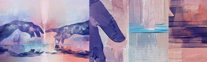 Fototapeten Muster Premium Sand - Göttlicher Funke des Lebens - Hände, Michelangelo, Stück - 100x30 cm