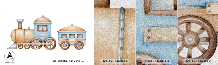 Fototapeten Muster Premium Sand - Am Bahnhof steht ... - Kinder, Zug, Retro - 100x30 cm