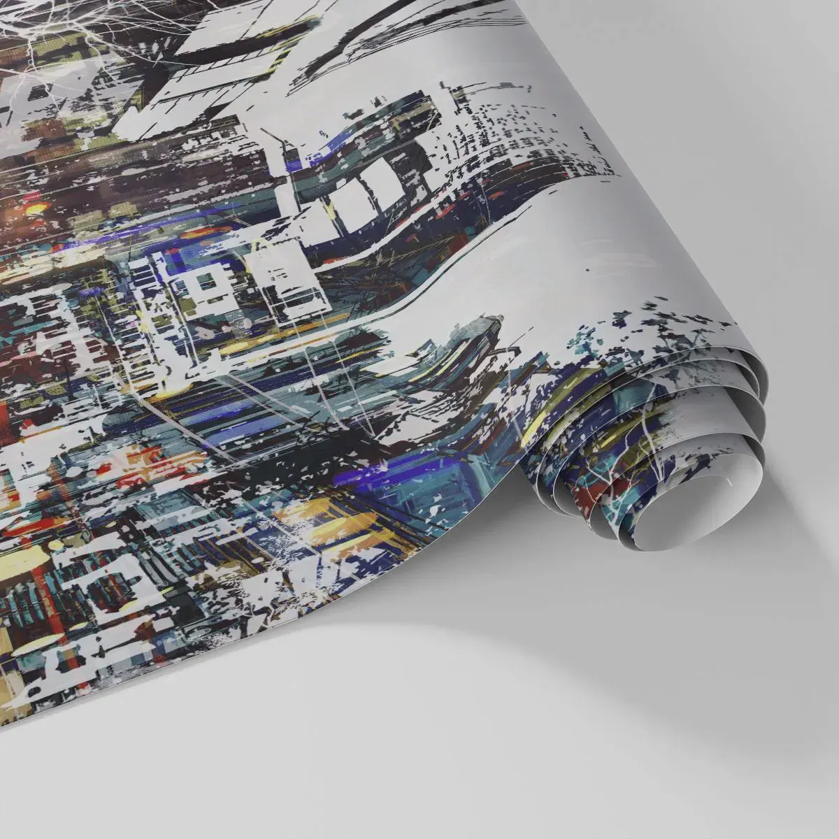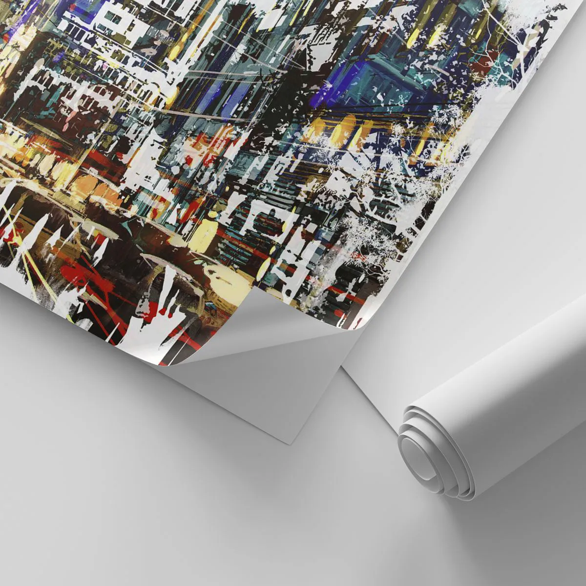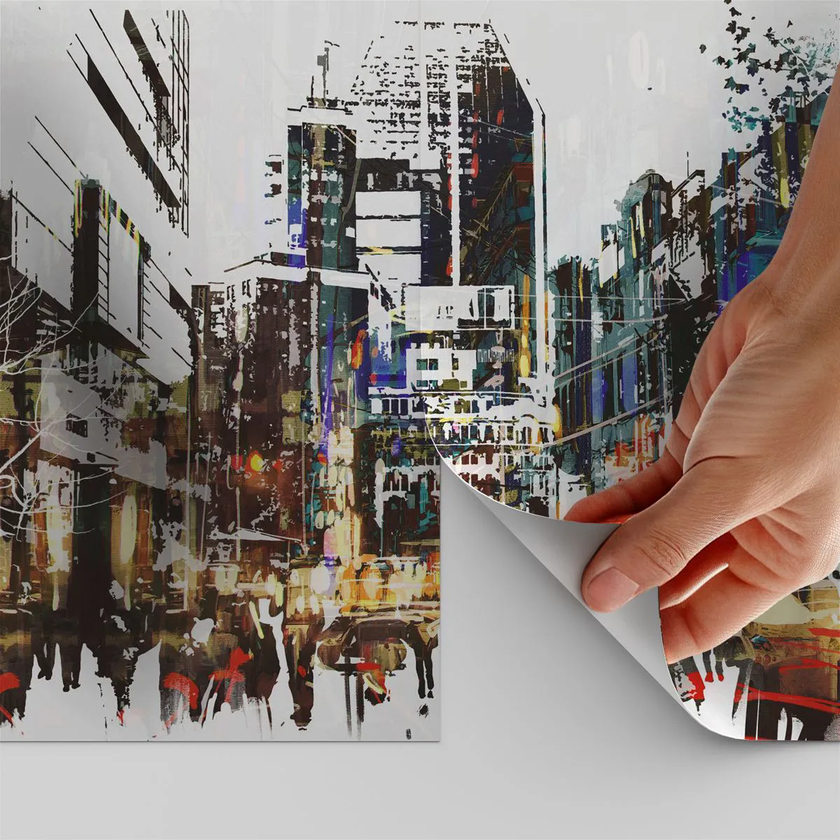 Selbstklebende Fototapete Deluxe Sticker - Eine schillernde Stadt - Stadt, Die Architektur, Grafik - 100x70 cm