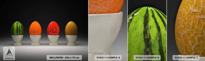 Fototapeten Muster Premium Canvas - Obstfrühstück - Abstraktion, Obst, Ei - 100x30 cm