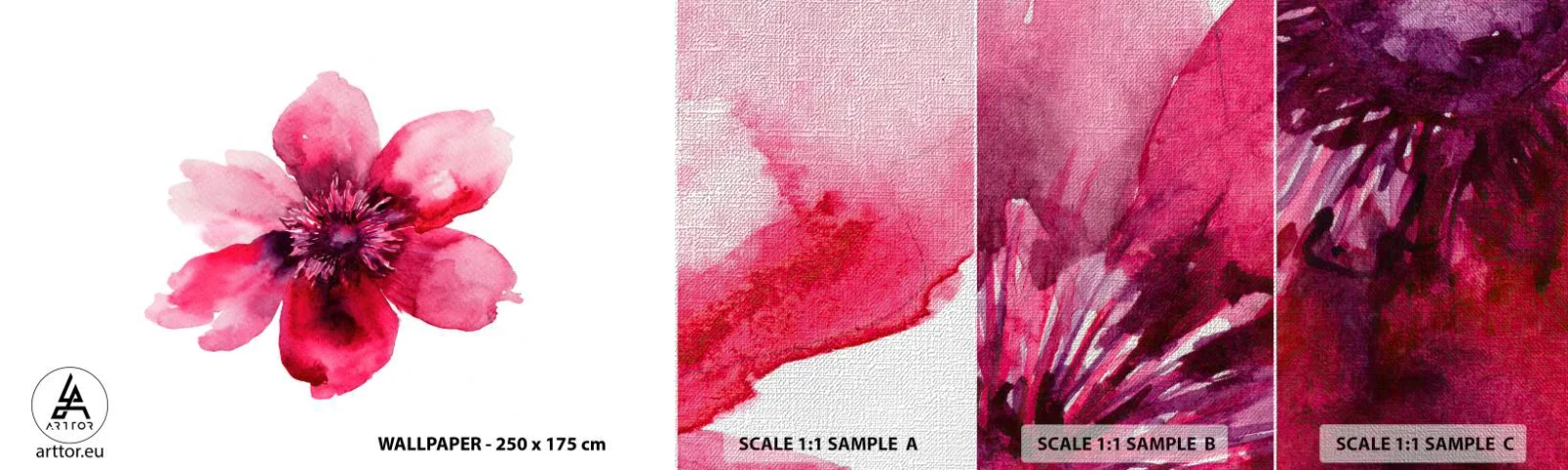 Fototapeten Muster Premium Canvas - Ein nach Karmin duftender Kuss - Blume, Aquarelle, Grafik - 100x30 cm