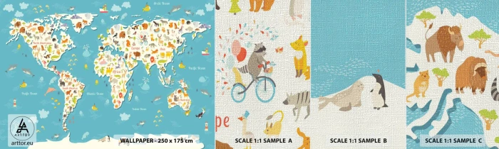Fototapeten Muster Premium Canvas - Wir lieben die ganze Welt - Weltkarte, Tiere, Für Kinder - 100x30 cm