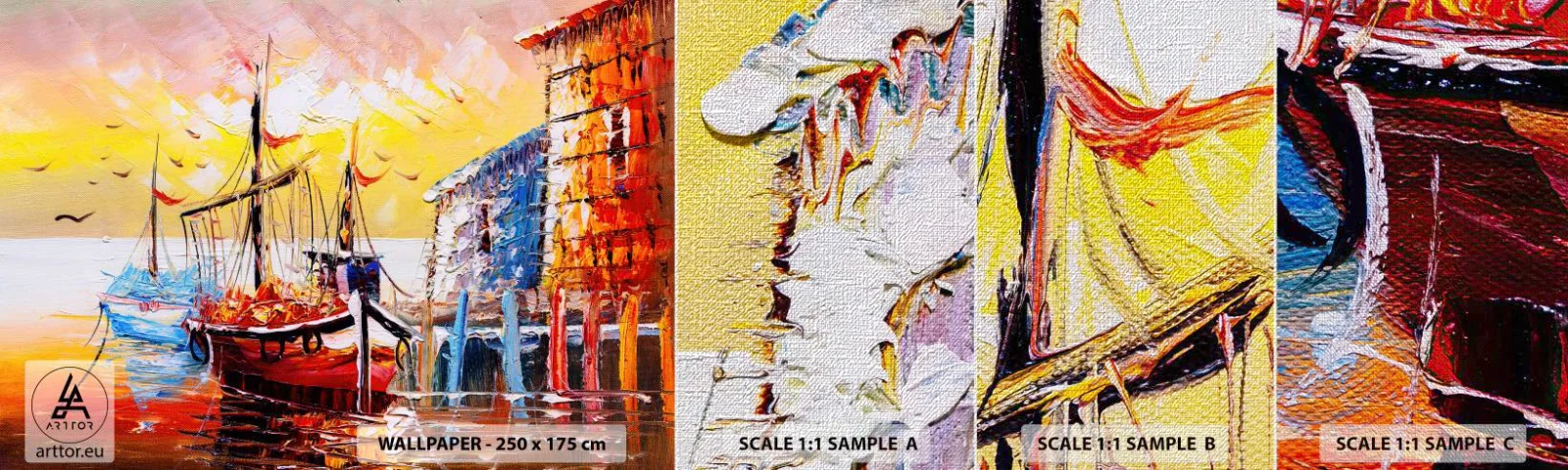 Fototapeten Muster Premium Canvas - Glückliche Rückkehr - Landschaft, Fischerhafen, Boote - 100x30 cm