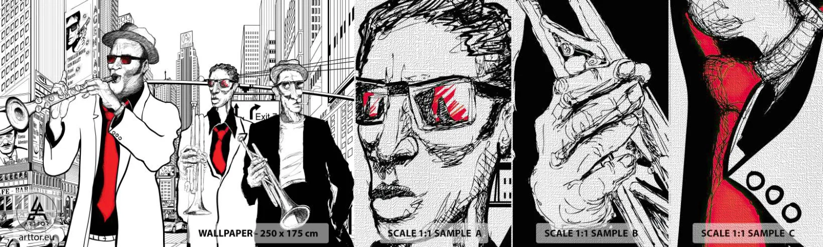 Fototapeten Muster Premium Canvas - Urbane Rhapsodie in Schwarz und Rot - New York, Jazz, Musik - 100x30 cm