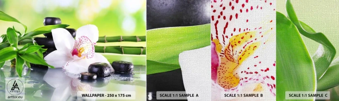 Fototapeten Muster Premium Canvas - Kühle Frische - Bambus, Blume, Orchidee - 100x30 cm