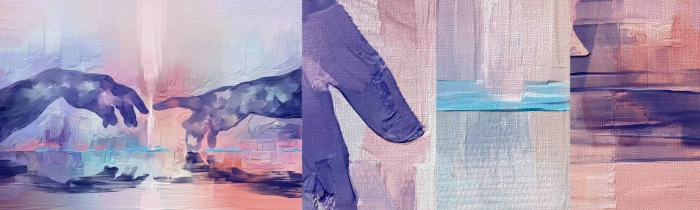 Fototapeten Muster Premium Canvas - Göttlicher Funke des Lebens - Hände, Michelangelo, Stück - 100x30 cm