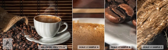 Fototapeten Muster Selbstklebend Deluxe Sticker - Die Schwärze von Kohle, die Klarheit von Bernstein - Gastronomie, Kaffee, Tasse Kaffee - 100x30 cm