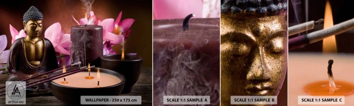Fototapeten Muster Selbstklebend Deluxe Sticker - Den Geist frei machen, den Körper beruhigen - Buddha, Religion, Blumen - 100x30 cm