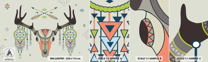 Fototapeten Muster Selbstklebend Deluxe Sticker - Indische Jägertrophäe - Abstraktion, Reh, Boho - 100x30 cm
