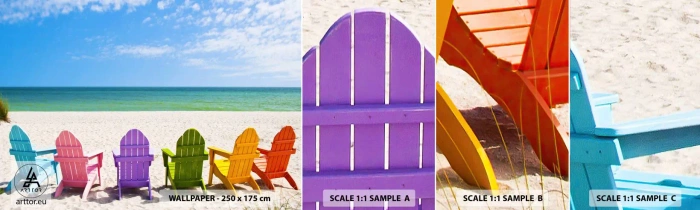 Fototapeten Muster Selbstklebend Deluxe Sticker - Regenbogenstrand - Landschaft, Strand, Liegestühle - 100x30 cm