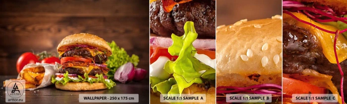 Fototapeten Muster Selbstklebend Deluxe Sticker - Die verbotene Frucht - Gastronomie, Hamburger, Burger - 100x30 cm