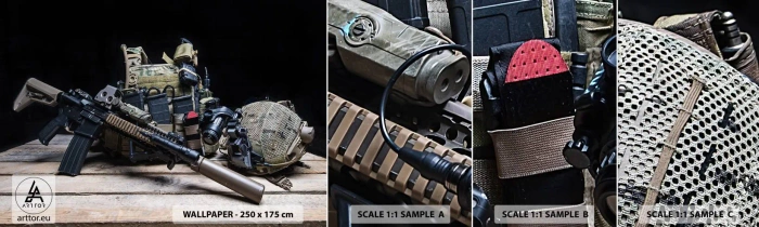 Fototapeten Muster Selbstklebend Deluxe Sticker - Sich ausruhen! - Militär, Gewehr, Waffe - 100x30 cm