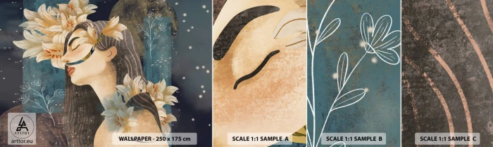 Fototapeten Muster Selbstklebend Deluxe Sticker - Ein Märchen über eine Prinzessin mit Lilien - Abstraktion, Frau, Blumen - 100x30 cm