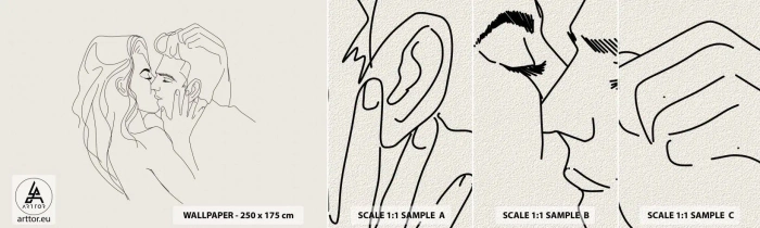Fototapeten Muster Selbstklebend Deluxe Sticker - Verstrickt im Gefühl - Grafik, Verliebtes Pärchen, Kuss - 100x30 cm