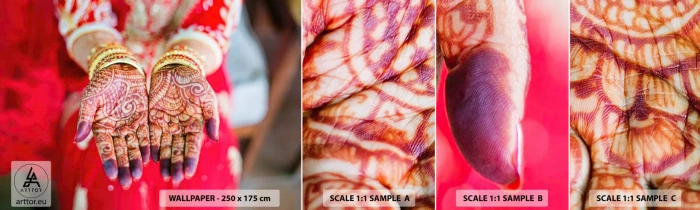 Fototapeten Muster Selbstklebend Deluxe Sticker - Bereit, das Glück zu fangen? - Frauenhände, Orientalische Designs, Indien - 100x30 cm