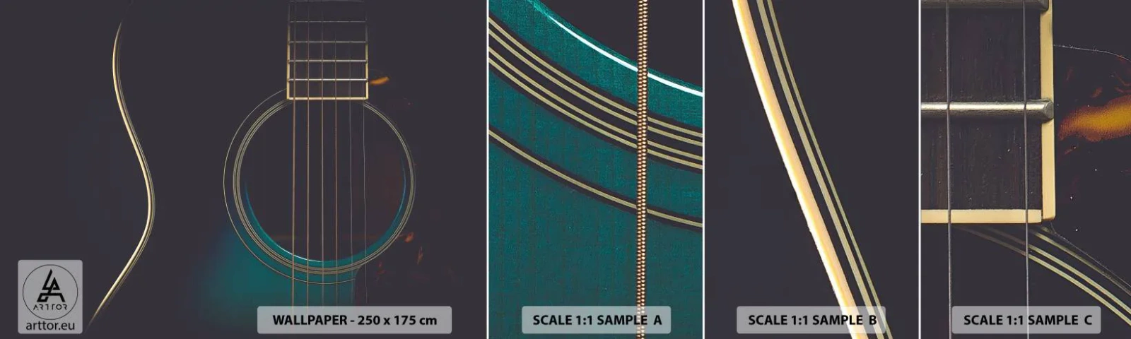 Fototapeten Muster Selbstklebend Deluxe Sticker - Einen Moment bevor es ertönt - Gitarre, Musik, Saiten - 100x30 cm
