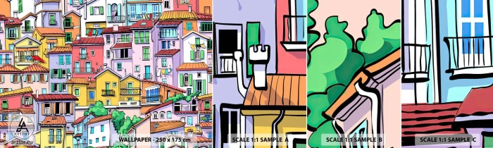 Fototapeten Muster Selbstklebend Deluxe Sticker - Lustige Stadt - Stadt, Mietshäuser, Häuser - 100x30 cm