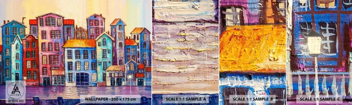 Fototapeten Muster Selbstklebend Deluxe Sticker - Stadt wie aus einem Märchen - Stück, Mietshäuser, Stadt - 100x30 cm