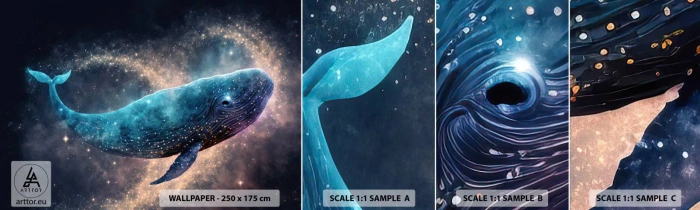 Fototapeten Muster Selbstklebend Deluxe Sticker - Es gibt so eine Welt… - Wal, Magie, Fantastisch - 100x30 cm