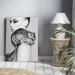 Bild auf Leinwand - Leinwandbild - Dame mit einem Chinchilla - 30x30 cm