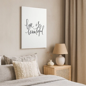 Die Leinwand wird über den Rahmen gespannt. Die Seiten und Kanten werden gedruckt, um das Bild fortzusetzen. Das Bild ist fertig zum Aufhängen an der Wand. Jedes Produkt hat einen am Rahmen befestigten Anhänger und ein Montageset (Schraube + Stift).