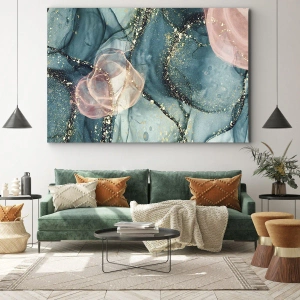 Bild auf Leinwand - Leinwandbild - Seidenblau, Tüllrosa - 100x40 cm