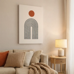 Die Leinwand wird über den Rahmen gespannt. Die Seiten und Kanten werden gedruckt, um das Bild fortzusetzen. Das Bild ist fertig zum Aufhängen an der Wand. Jedes Produkt hat einen am Rahmen befestigten Anhänger und ein Montageset (Schraube + Stift).