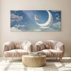 • Abstrakt, Für Kinder, Mond, Für Kinder, Fantasy, Kunst, Für das Esszimmer, für das Kinderzimmer, für den Flur, für das Wohnzimmer, für das Schlafzimmer, Blau Weiss, Panorama