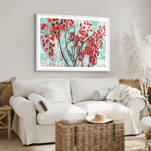 Poster in einem weißen Rahmen - Baum in Scharlachrot - 50x50 cm