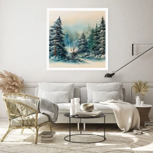 Poster - Winterlandschaft mit schneebedeckten Bäumen - 100x70cm - Bereit für Weihnachten - Moderne Wanddekoration für Wohnzimmer und Schlafzimmer ARTTOR
