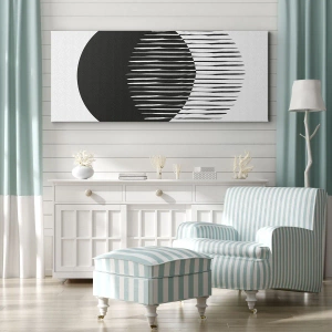 Die Leinwand wird über den Rahmen gespannt. Die Seiten und Kanten werden gedruckt, um das Bild fortzusetzen. Das Bild ist fertig zum Aufhängen an der Wand. Jedes Produkt hat einen am Rahmen befestigten Anhänger und ein Montageset (Schraube + Stift).