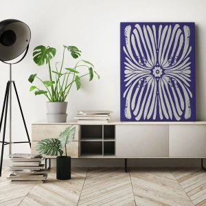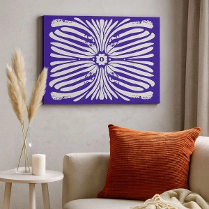 - Dieses Gemälde zeigt ein ethnisches Muster in Lila- und Weißtönen. Eine minimalistische und elegante Dekoration, die jedem Interieur Harmonie und einzigartigen Stil verleiht.
