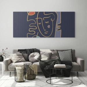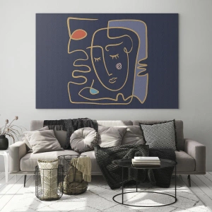 Glasbild - Bild auf glas - Abstraktes Gesicht im Umriss auf marineblauem Hintergrund - 50x70cm - In Gedanken - Moderne Wanddekoration für Wohnzimmer und Schlafzimmer ARTTOR