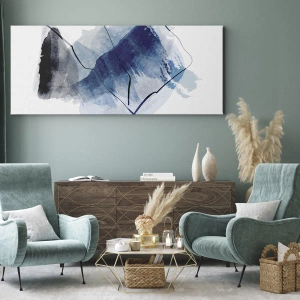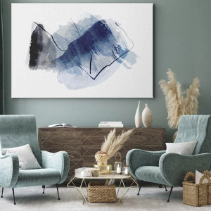 - Ein Gemälde mit abstrakten Formen in Blautönen und zarten Linien. Eine minimalistische und harmonische Komposition, perfekt für moderne und elegante Innenräume.