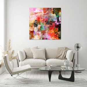• Abstrakt, Kunst, Grafik, Abstrakte Kunst, Für das Büro, für das Arbeitszimmer, für das Esszimmer, für den Flur, für das Wohnzimmer, für das Schlafzimmer, Rot, bunt, Quadrat