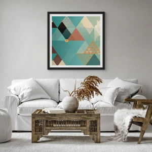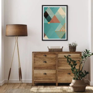 Poster in einem schwarzem Rahmen - Geometrische Muster in Türkis- und Brauntönen - 70x50cm - Einheit der Vielheit, Vielheit der Einheit - Moderne Wanddekoration für Wohnzimmer und Schlafzimmer ARTTOR