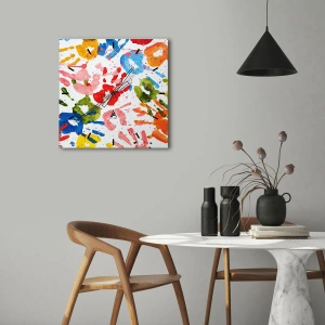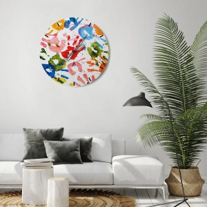 Wanduhr - Glasuhr - Bunte Handabdrücke auf weißem Hintergrund - 30x30cm - Folgen Sie den Spuren - Moderne Wanddekoration für Wohnzimmer und Schlafzimmer ARTTOR
