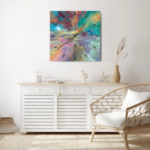 Wanduhr - Glasuhr - Ein farbenfroher Himmel voller abstrakter Wolken über einem ruhigen Horizont - 30x30cm - Zwei Himmel - Moderne Wanddekoration für Wohnzimmer, Küche und Schlafzimmer ARTTOR