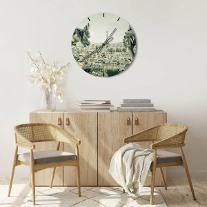 Wanduhr - Glasuhr - Wasserspeier mit Blick auf die Skyline von Paris und den Eiffelturm - 30x30cm - Pariser Plaudern - Moderne Wanddekoration für Wohnzimmer und Schlafzimmer ARTTOR