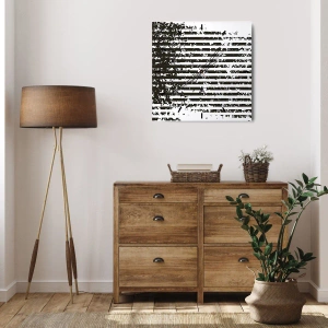 Das Modell „Rhythm and Noise“ präsentiert eine originelle Interpretation minimalistischen Designs, bei der schwarz-weiße horizontale Linien mit unregelmäßiger Textur eine dynamische, rhythmische Komposition erzeugen. Die Kombination aus Schlichtheit und Ausdruck zieht die Blicke auf sich und verleiht dem Interieur einen modernen Charakter.