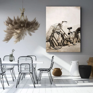 Bild auf Leinwand - Leinwandbild - Zwei Fahrräder lehnen an einer alten Wand im Retro-Stil - 50x70cm - Der unvergessliche Charme der Vergangenheit - Moderne Wanddekoration für Wohnzimmer und Schlafzimmer ARTTOR