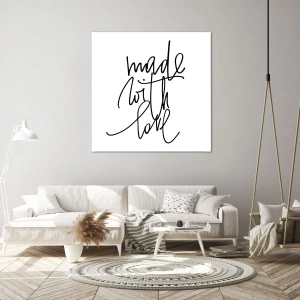 Bild auf Leinwand - Leinwandbild - Schwarze Aufschrift „Made with love“ auf weißem Hintergrund - 50x70cm - Die beste Marke - Moderne Wanddekoration für Wohnzimmer und Schlafzimmer ARTTOR