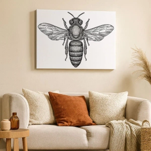 Bild auf Leinwand - Leinwandbild - Ein Cartoon-Bienenmotiv auf weißem Hintergrund im minimalistischen Stil. - 50x70cm - Insektenporträt - Moderne Wanddekoration für Wohnzimmer und Schlafzimmer ARTTOR