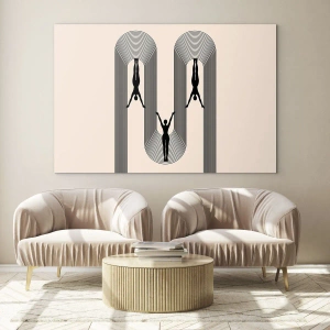 Wandbild – Kopfüber – Schwarze Silhouetten von Figuren, die in rhythmischen Bögen hängen
