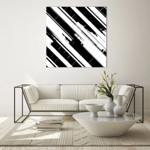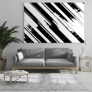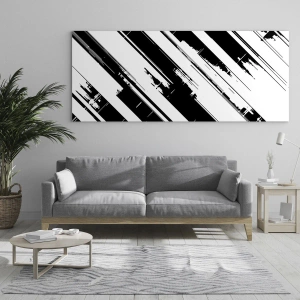 Glasbild - Bild auf glas - Dynamische schwarz-weiße Streifen mit Used-Effekt - 50x70cm - Eine intensive und dynamische Komposition - Moderne Wanddekoration für Wohnzimmer und Schlafzimmer ARTTOR