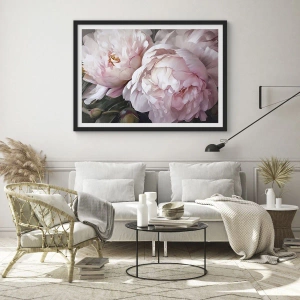 • Blumen, Pfingstrosen, Romantisch, Botanik, Blumen, Pastell, Kunst, Für das Büro, für das Arbeitszimmer, für das Esszimmer, für den Flur, für das Wohnzimmer, für das Schlafzimmer, Weiß, Rosa, Vertikal