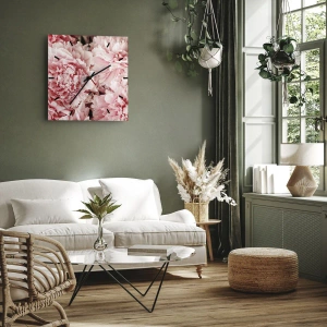 Wanduhr - Glasuhr - Zarte rosa Pfingstrosen in zartem Ambiente - 30x30cm - Rosa Traum - Moderne Wanddekoration für Wohnzimmer und Schlafzimmer ARTTOR