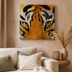 „Bedrohlich und schön“ ist ein äußerst eindrucksvoller Leinwanddruck, der ein Nahaufnahmeporträt eines Tigers mit intensivem Blick zeigt. Das detaillierte Fell und die faszinierenden Augen des Raubtiers schaffen eine Atmosphäre von Stärke, Wildheit und natürlicher Eleganz und verleihen Innenräumen einen einzigartigen Charakter.